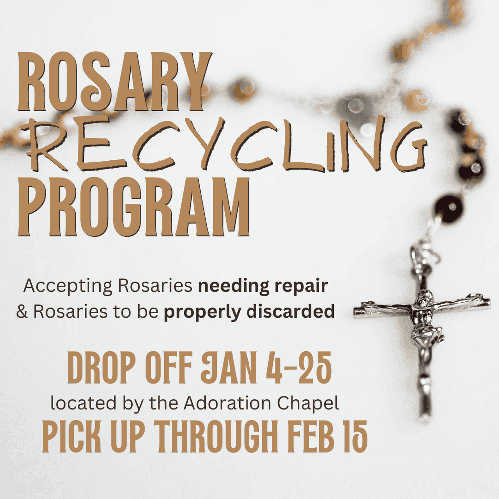 - Now-January 25: Rosary Recycling Program