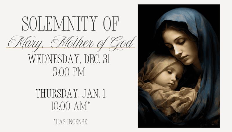 - December 31 – January 1: Solemnity Mass Times