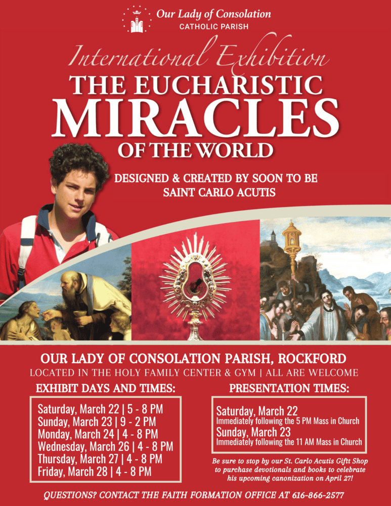 • March 22-28: Eucharistic Miracles Exhibit