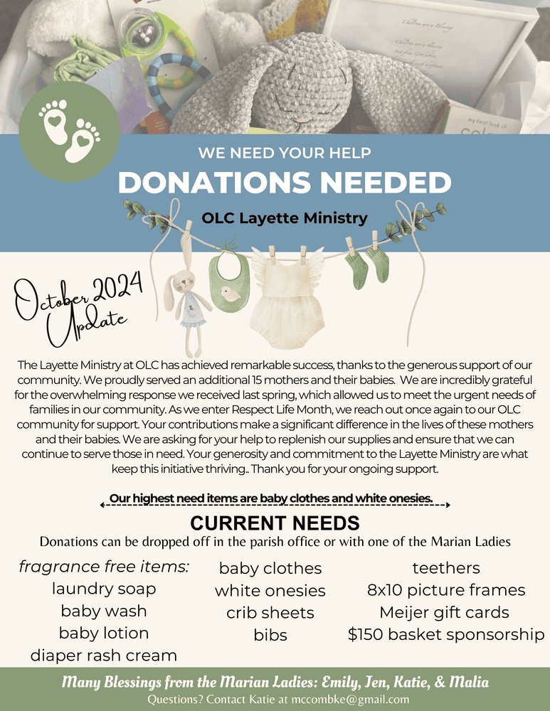 As part of 40 Days for Life, OLC’s day-to-pray at the abortion clinic is Thursday, 10/24 in Grand Rapids.