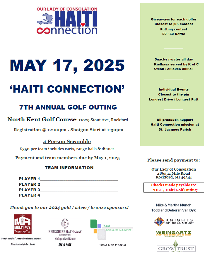 A downloadable Haiti Golf Outing flyer is attached to this email