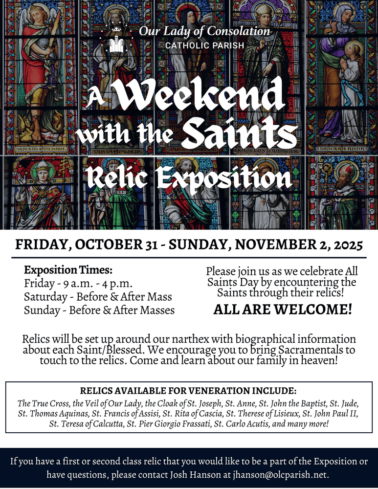 You are receiving this message because you are a member of Our Lady of Consolation Parish & School. Respond to this message if you wish to opt out of communication.