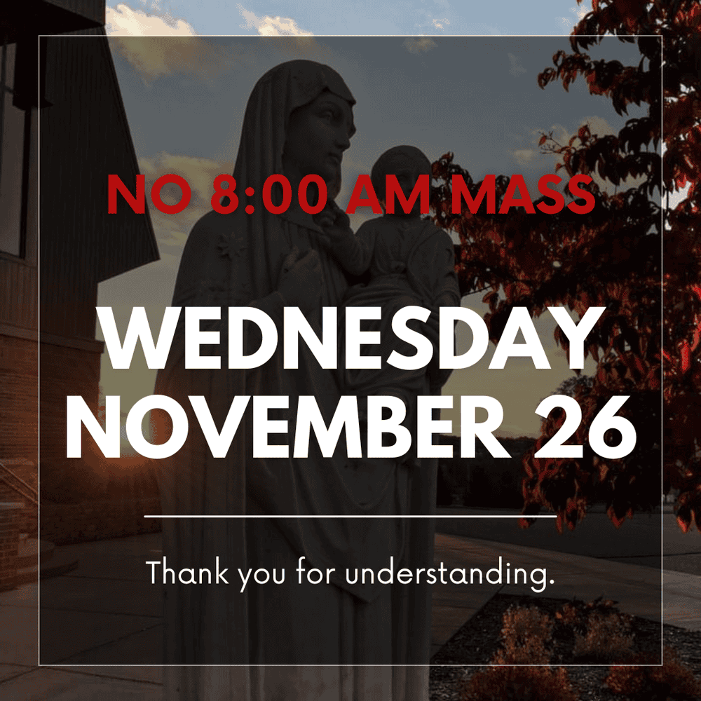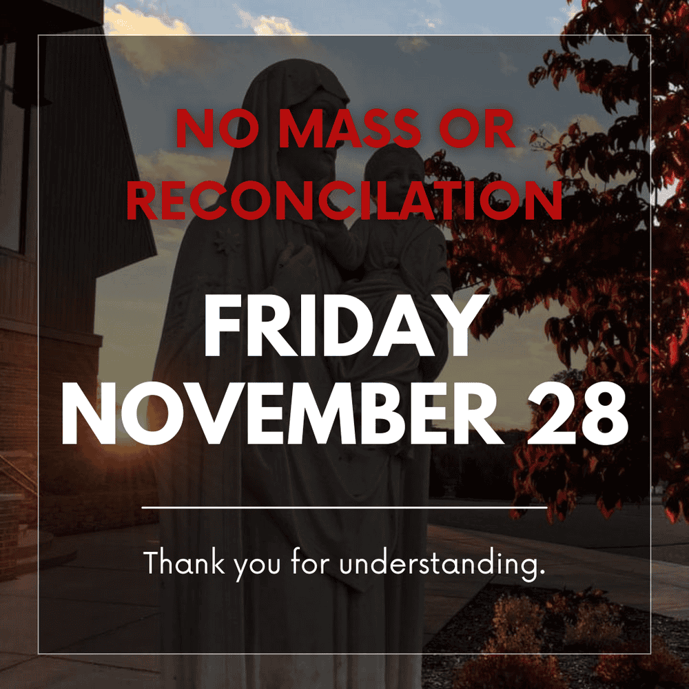 NO CONFESSION/MASS FRIDAY, NOVEMBER 28