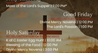 Liturgy Schedule: April 13 - Palm Sunday 9:00 AM* & 11:00 AM* Mass April 15 - Tuesday of Holy Week…