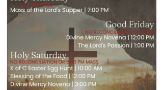 In this message: April 11: Fish Fry & Stations of the Cross April 12: Way of the Cross April 12-13:…