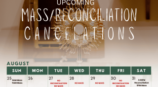 Just a reminder that there are no Daily Masses or Reconciliation times this week (August 27-30).